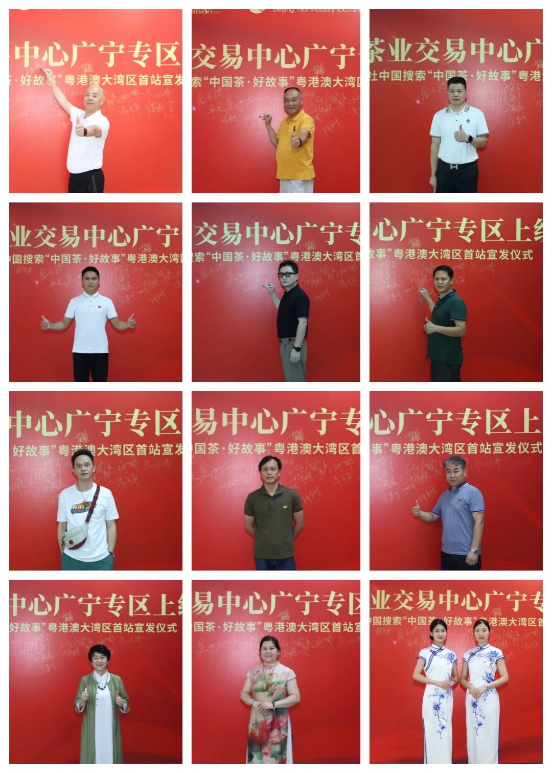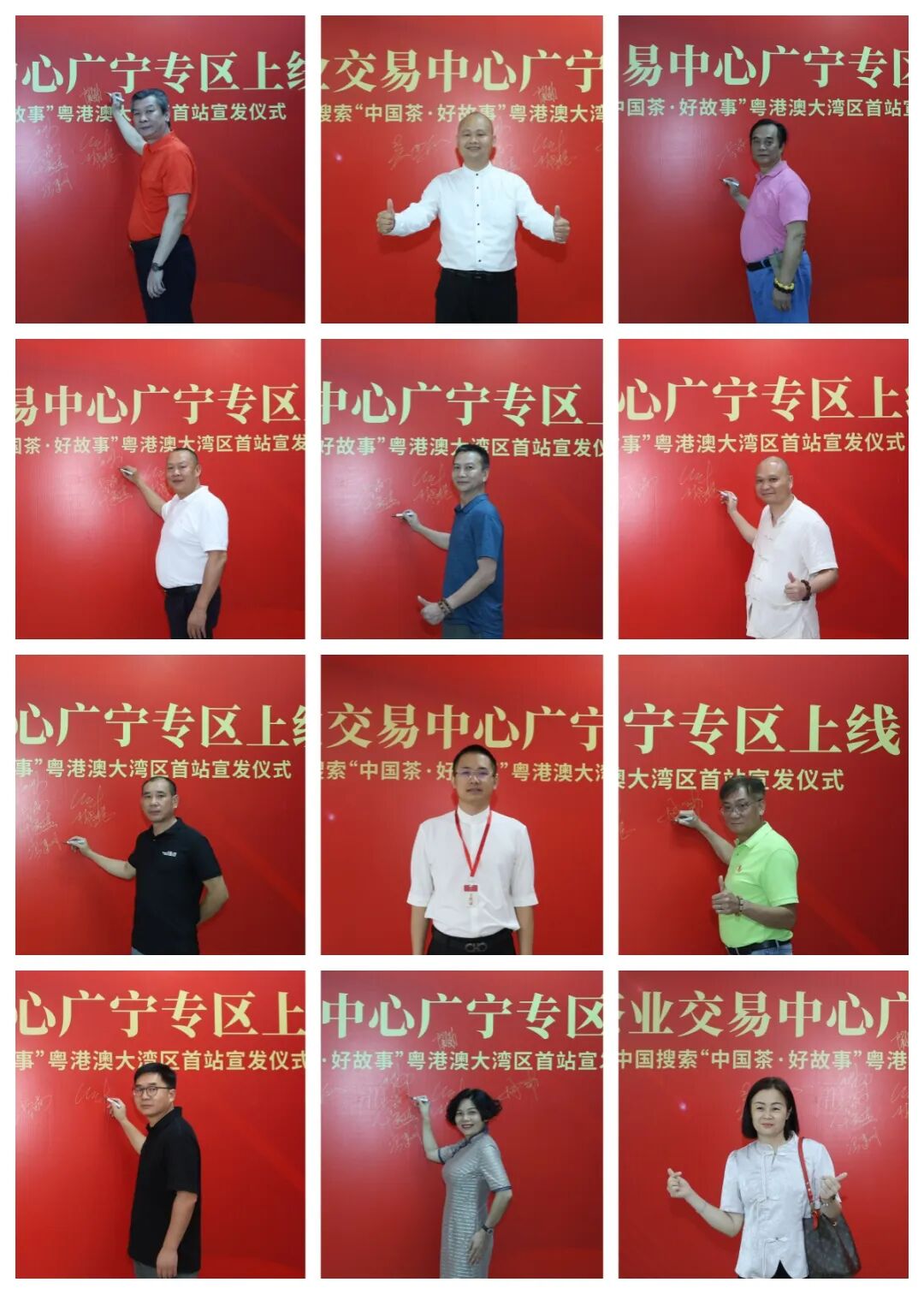 中共广宁县委副书记、县长何剑才、北京茶业交易中心总经理李琼、新华社中国搜索创新传播中心主任曹雪、广宁县人大常委会副主任张志军、广宁县人民政府副县长梁宇强、广宁县政协副主席何志文、中共江屯镇党委书记伍泽锋、中国茶叶流通协会副会长、快乐普洱茶产业基地董事长吴世海、广东省茶叶收藏与鉴赏协会副会长、东莞市茶叶行业协会主席卢树勋、快乐普洱茶产业基地董事总经理吴伟雄、勐海合和昌茶业有限公司董事长钟广林、广东东和茶叶有限责任公司董事长陈军日、广东友福茶叶有限责任公司董事长朱粤湘、中国茶叶流通协会普洱茶专委会副秘书长王缉东、珠海市茶业商会会长詹牧德、广州广宁茶商会理事长陈国杰、双陈养普科学研究院院长王冬妮、广东省云鼎柑普茶业有限公司董事长赖惠清等及广宁县直有关部门负责同志和全国各地100多家茶企代表、媒体记者、茶友代表等参加了仪式。