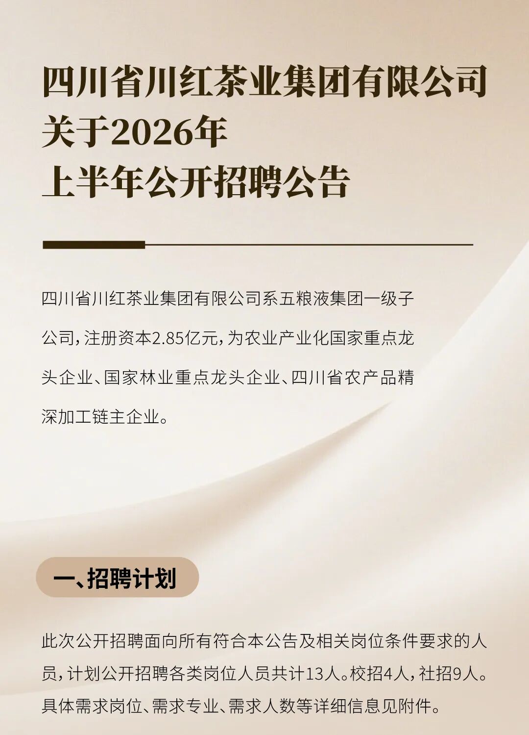 【会员招聘】四川省川红茶业集团有限公司关于2026年上半年公开招聘公告
