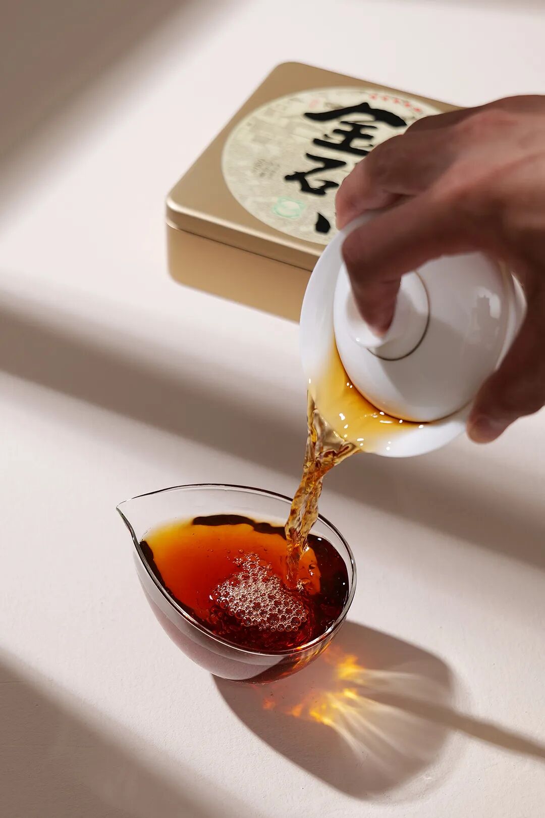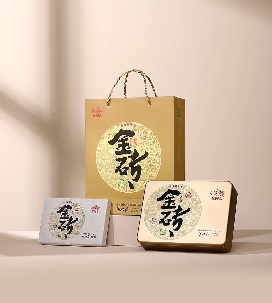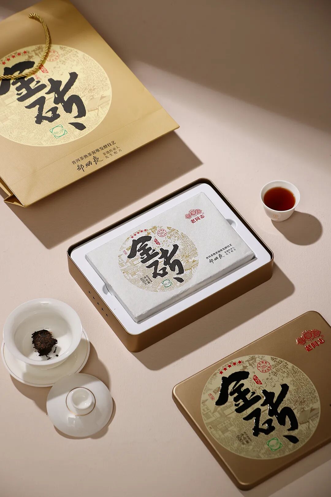 它的寓意就跟中国人在翡翠中找到“福禄寿”一样,代表着人们美好的愿望,借其财运昌旺之上佳寓意,特制“金砖”精品熟茶。