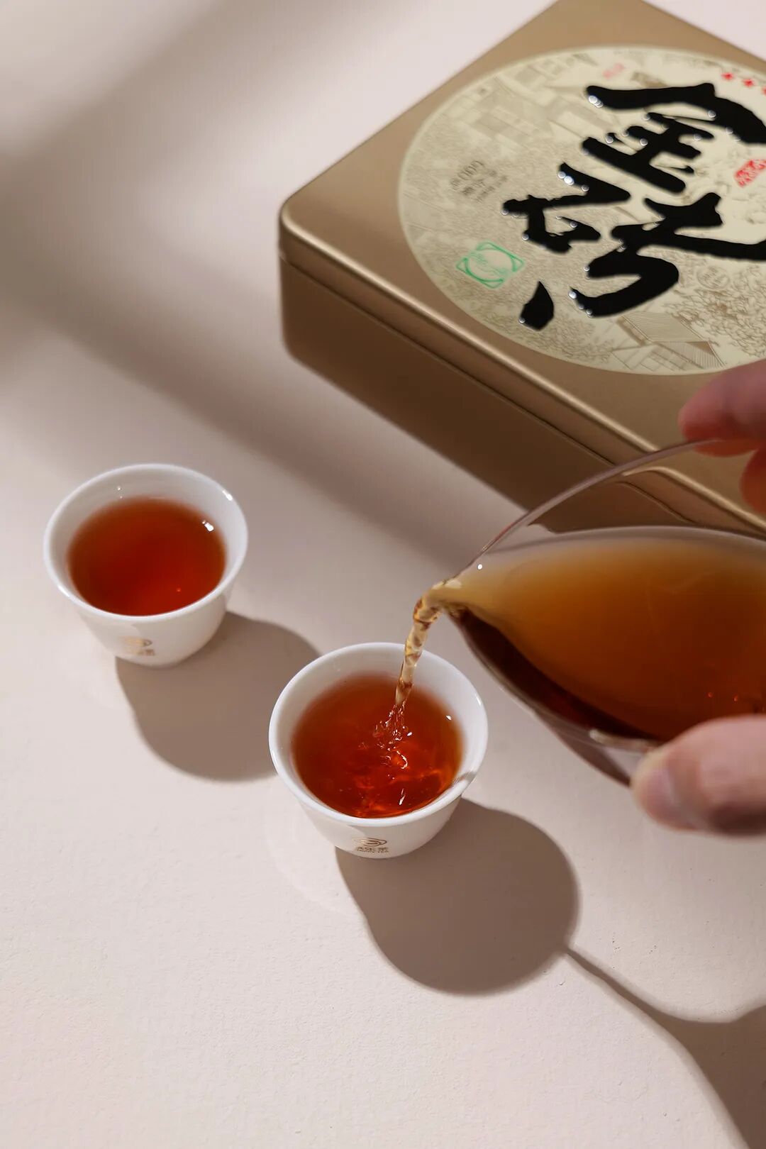 该茶方正厚重,条索清晰,金毫满目,色泽褐红油润