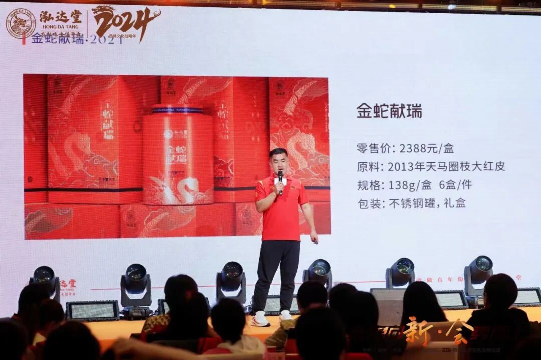 龙增林先生介绍新品据了解,“2024东甲庄园陈皮礼盒”与“2024梅冈沙庄园陈皮礼盒”属于泓达堂庄园系列,其甄选新会核心产区庄园大红柑为原料,可谓优中选优,并遵传统非遗制作技艺以匠心精神精心制作,经阳光生晒,自然干仓陈化而成。滋味醇厚而清甜,两款新品内含2014年与2019年两个年份的陈皮,经历了5年,10年时光的蜕变,它的收藏价值与稀缺性不言而喻,属于殿堂级佳作,可以满足高端送礼以及收藏投资等多种需求。“良机陈皮礼盒(升级版)”则集结了泓达堂在有机上的优势,严选2020年梅冈沙有机柑园的老树柑作为原料,每一片陈皮都保持自然真味,陈香宜人,是兼具“名产区+有机”的精品,精准契合了高端消费群体在品饮、送礼、收藏投资等多方面的需求。而“金蛇献瑞”则是新会陈皮文化与生肖文化“珠联璧合”的重要表现形式,其选用12年纯干仓储存自然转化的天马产区优质大红皮为原料,匠心制作,是非常具有延续性、辨识度的陈皮产品。它既契合了消费者品饮、春节送礼的需求,也凭借其被赋予的传统生肖文化内涵,满足了收藏客的投资收藏期待。