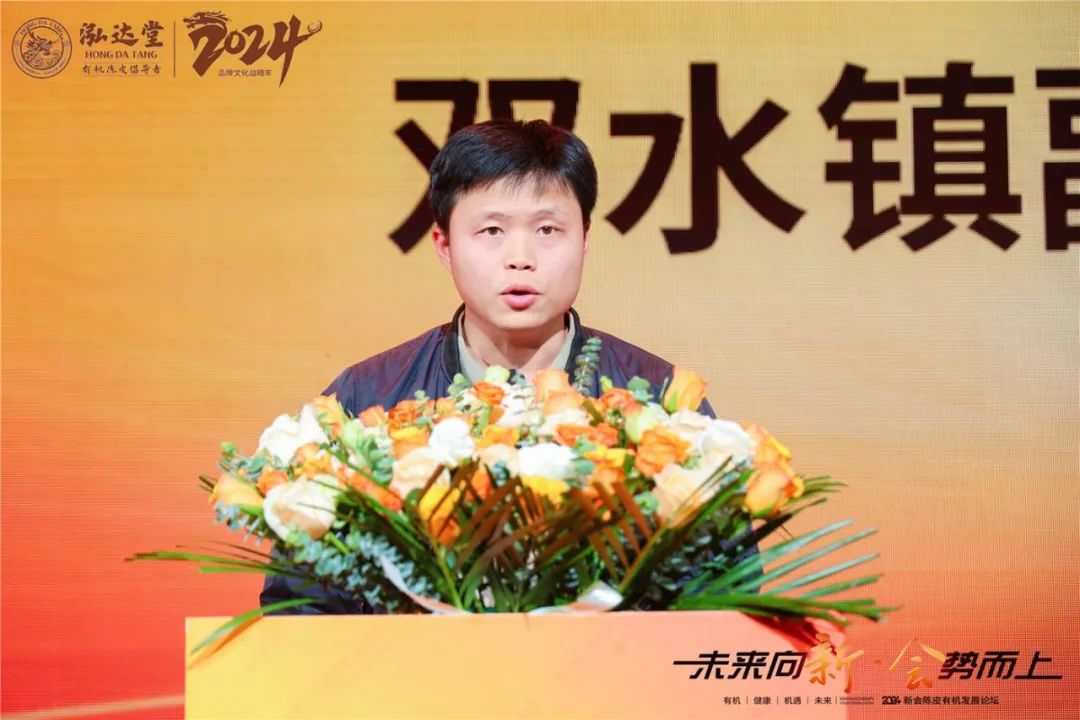 28日晚上,伴随着开场舞精彩的节拍,泓达堂经销商晚宴的序幕缓缓拉开。新会区人民政府党组成员、副区长李志刚先生上台致辞,他说到,新会陈皮全产业链总产值从2011年不足3亿元增长至2023年的230亿元,取得了跨越式发展。2022、2023年,新会陈皮连续登顶“中国区域农业产业品牌影响力指数”排行榜,今年,新会区获授“中国陈皮之都·新会”称号,开启了全新的发展征程。此外,他还高度赞扬了泓达堂在新会陈皮文化上不遗余力的推广,带动了新会陈皮产业链的发展,也欢迎大家继续关注新会陈皮,投资新会陈皮产业。随后,廖长亮先生也在晚宴上致辞,他的言语中满是感恩之心:感恩这个时代,感恩合作伙伴,感恩消费者。他表示,我们都是站在同一条阵线,携手面对这瞬息万变的市场和挑战。在新的征途上,泓达堂将与大家同心同力、坚定信心,聚力笃行强市场,砥砺奋进谱新篇。