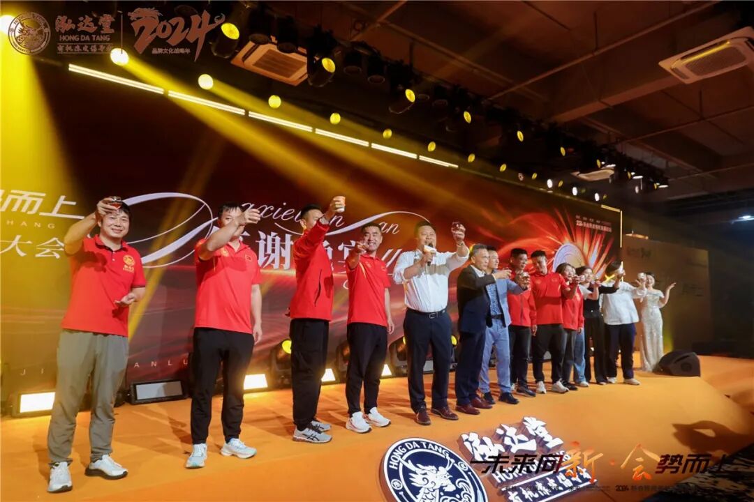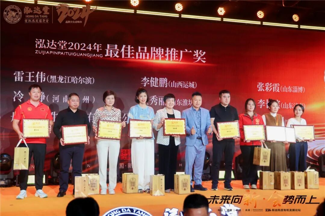 泓达堂两位优秀城市合伙人上台分享随后,泓达堂为新加入的经销商举行了签约仪式,一次次真挚的合作握手,一份份合作协议的签订,为泓达堂全国市场拓展又增添了新的力量。成长的路上,需要榜样的力量。在新会陈皮市场竞争日趋激烈的大环境中,泓达堂经销商锐意进取,逆势增长,为泓达堂在复杂的市场环境中稳健前行提供了强大支撑。晚宴上,泓达堂为优秀经销合作伙伴举办了盛大的表彰典礼,颁发了“2024年品牌优秀经销商”、“2024年最佳品牌推广奖”与“2024年品牌业绩突出奖”三大奖项与珍贵奖品。众多获奖经销商踏上荣耀舞台,收获了属于自己的高光时刻。